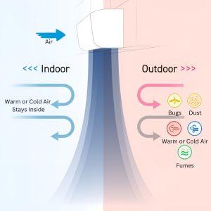 در فصول سرد، این دستگاه مانع خروج هوای گرم و ورود هوای سرد میشود و در فصول گرم، جلوی نفوذ هوای گرم و مرطوب را میگیرد.